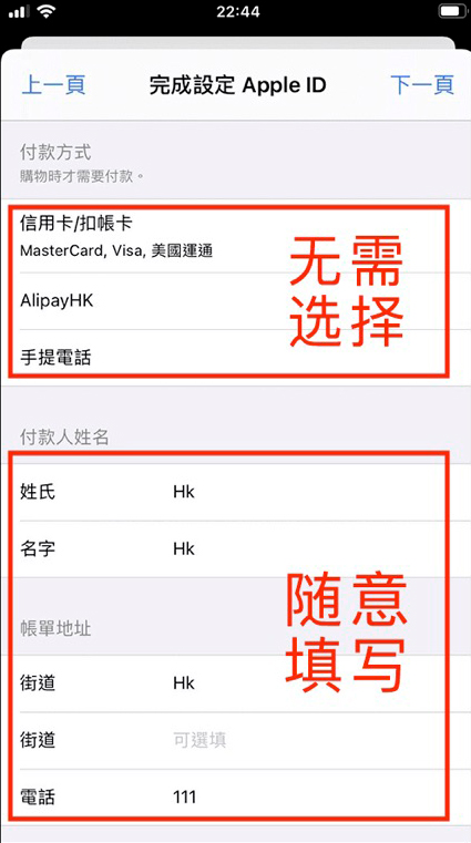 根据提示输入您的个人相关信息,注意在国家和地区请选择<香港>,另外: