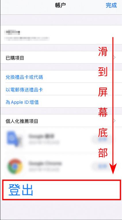 下载完成后,在 App Store 中点击<右上角图标>然后<滑倒底部>登出账号;